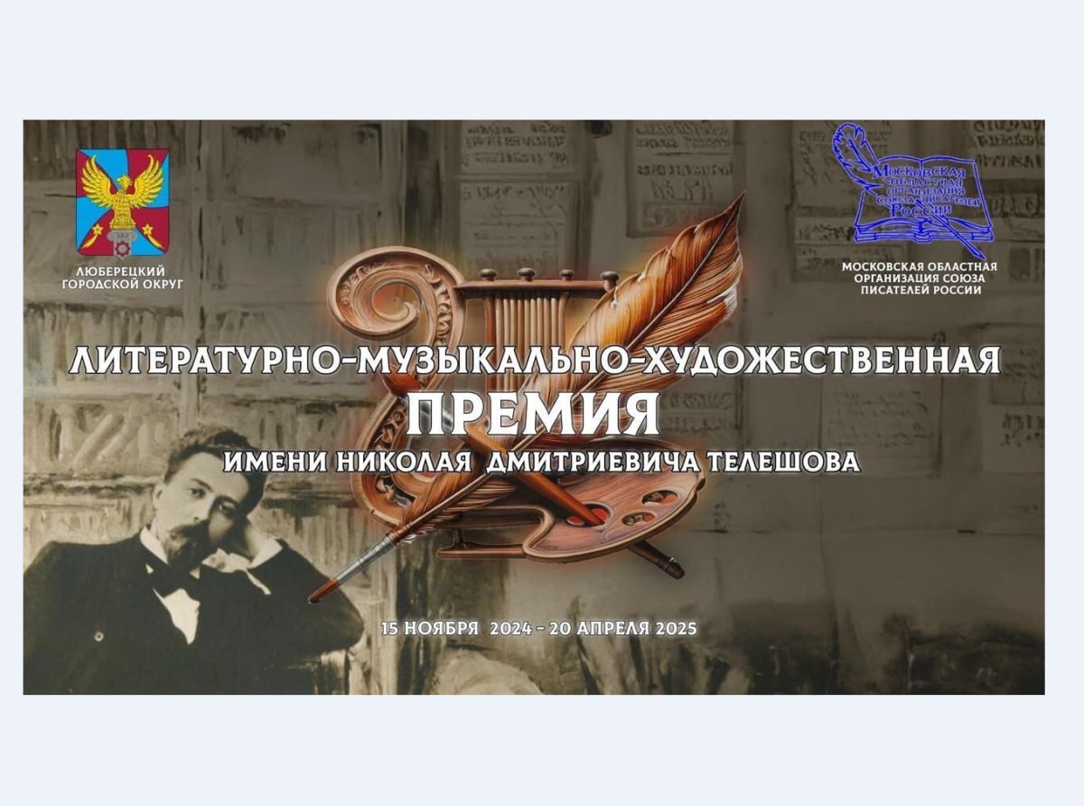 Второй этап литературно-музыкально-художественного конкурса «Премия имени Николая Дмитриевича Телешова» стартовал в городском округе Люберцы. Он учреждён администрацией муниципалитета и Московской областной организацией Союза писателей России.
