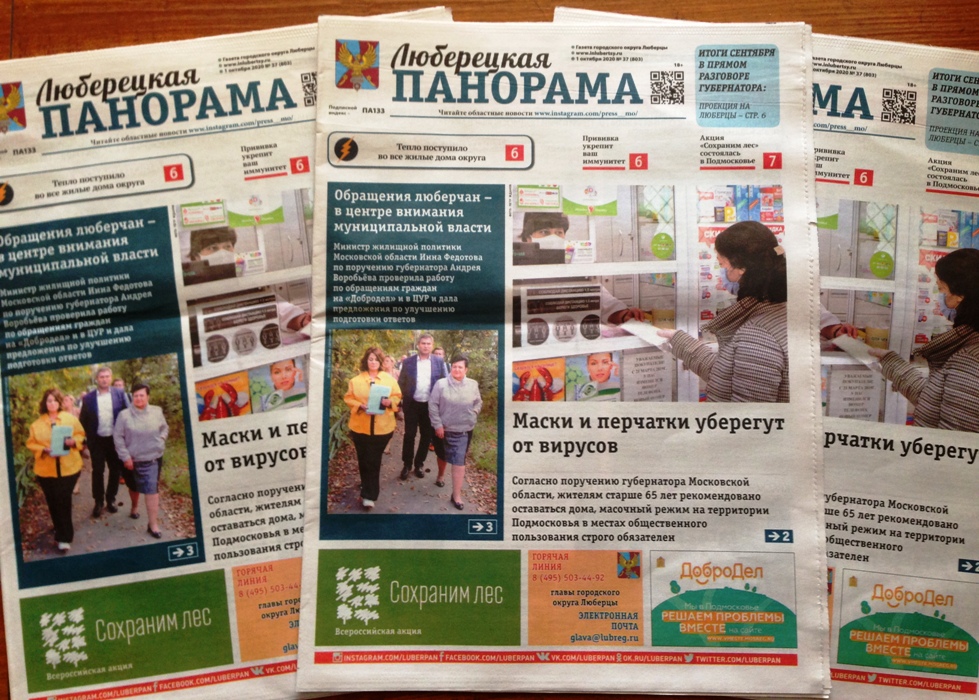 Первого октября вышел в свет тридцать седьмой номер общественно-политической газеты «Люберецкая панорама».