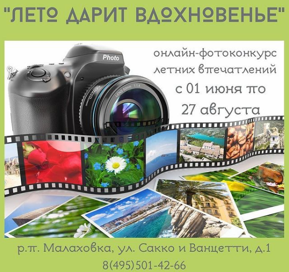 Работы можно присылать до 27 августа на электронную почту biblio_malahovka@mail.ru или в вотсап на номер 8(910) 478-05-64 с указанием названия фотоработы, ее автора и контактного телефона.