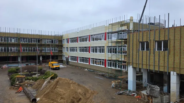 На 60% выполнены работы по ремонту фасада гимназии №5 «Интеллект» в Люберцах