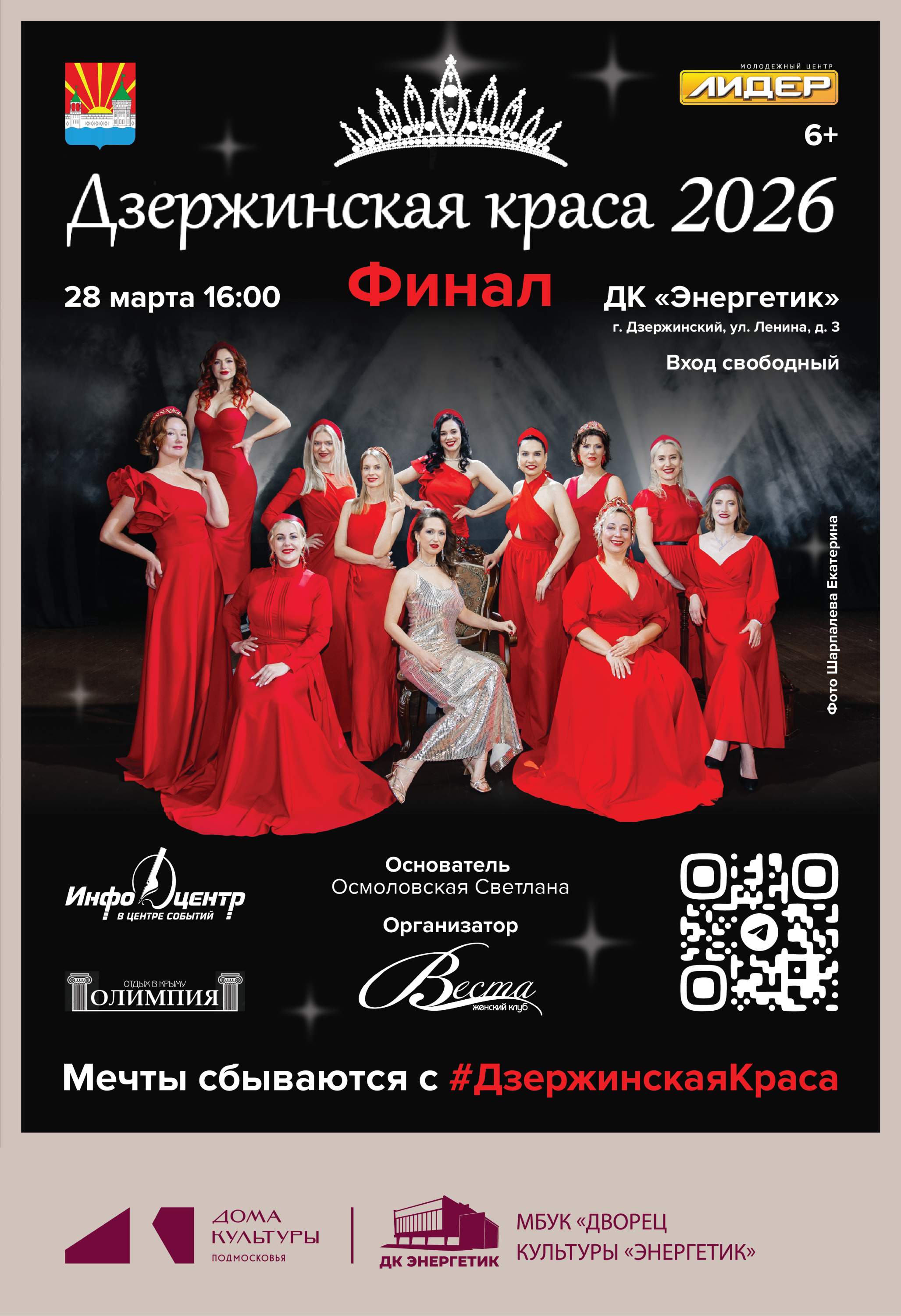 Финал традиционного городского конкурса красоты «Дзержинская краса — 2026» состоится во Дворце культуры «Энергетик» г. Дзержинский (ул. Ленина, д. 3) городского округа Люберцы в субботу, 28 марта.