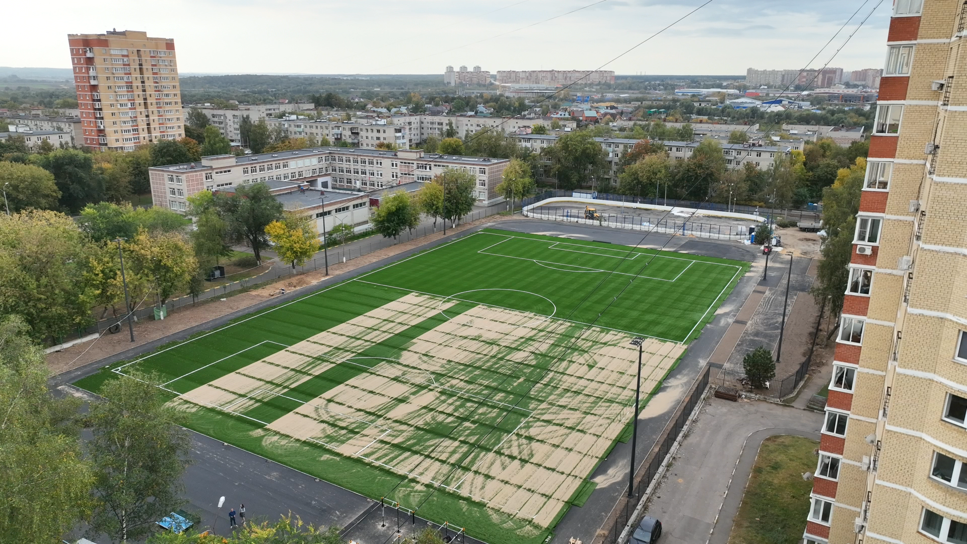 «Специалисты уже смонтировали современное освещение, постелили искусственный газон, установили площадку для выполнения нормативов ГТО - завершают монтаж элементов, приступают к установке новых трибун на 224 места и тёплых раздевалок», - сообщил глава городского округа Люберцы Владимир Волков.